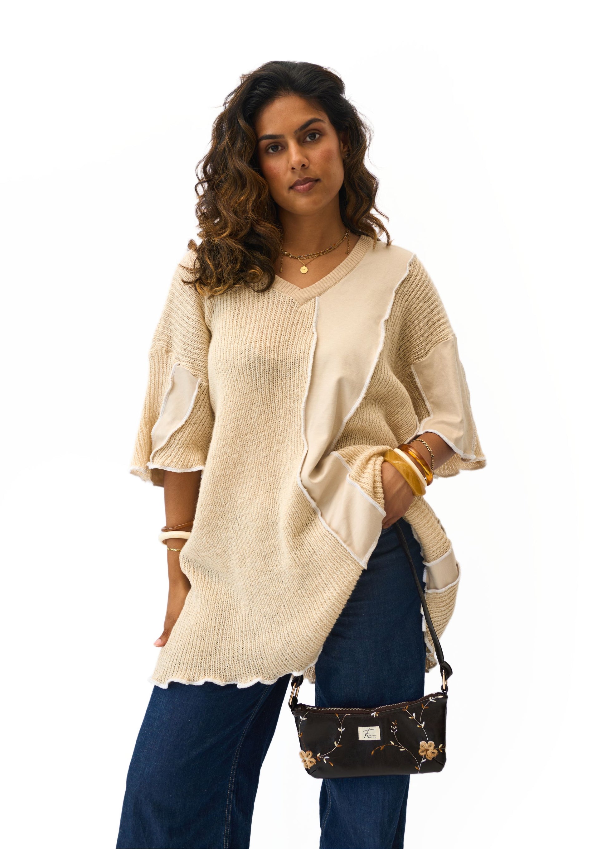 - Ausschnitt: V-Ausschnitt mit Rippstrickbesatz