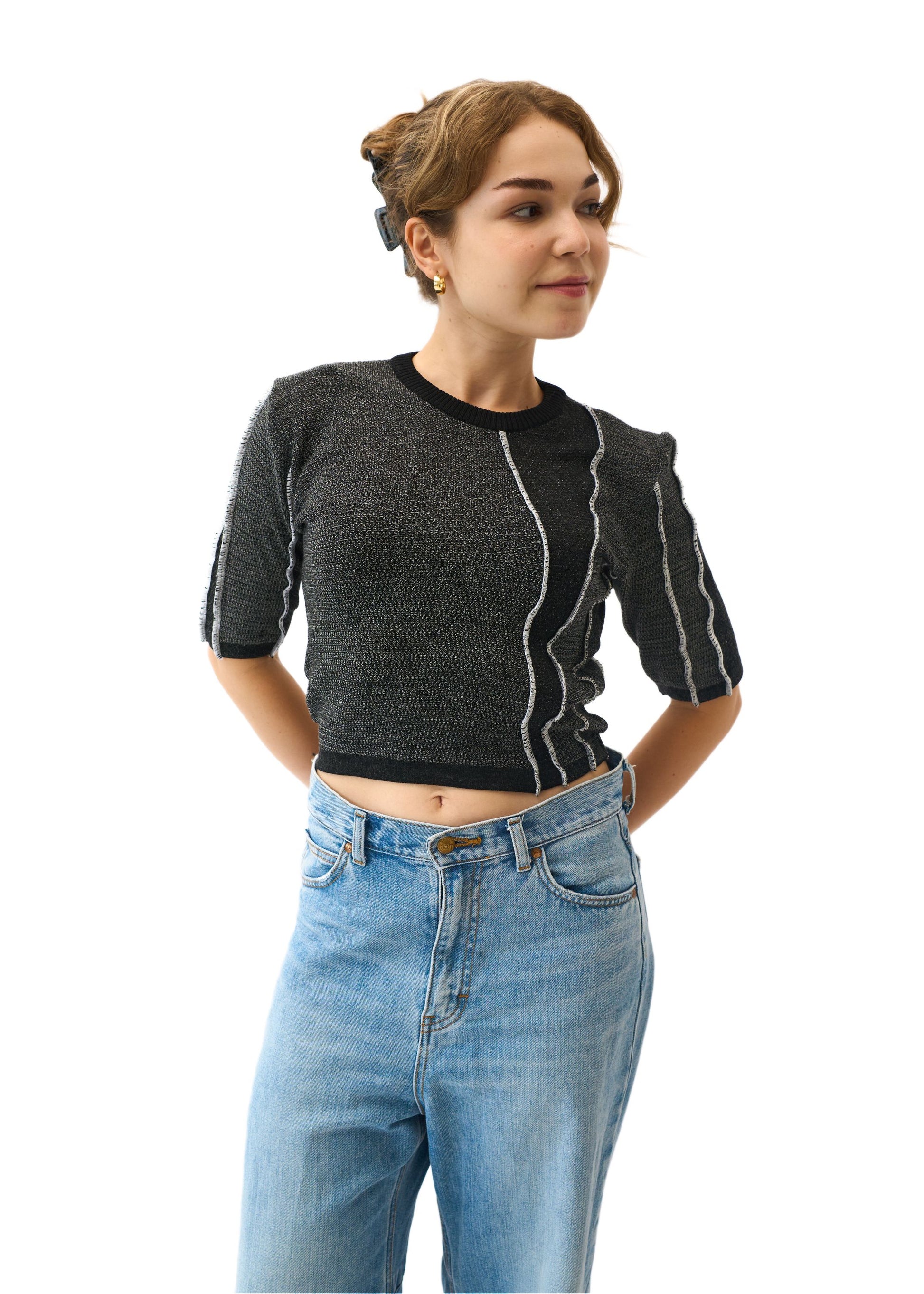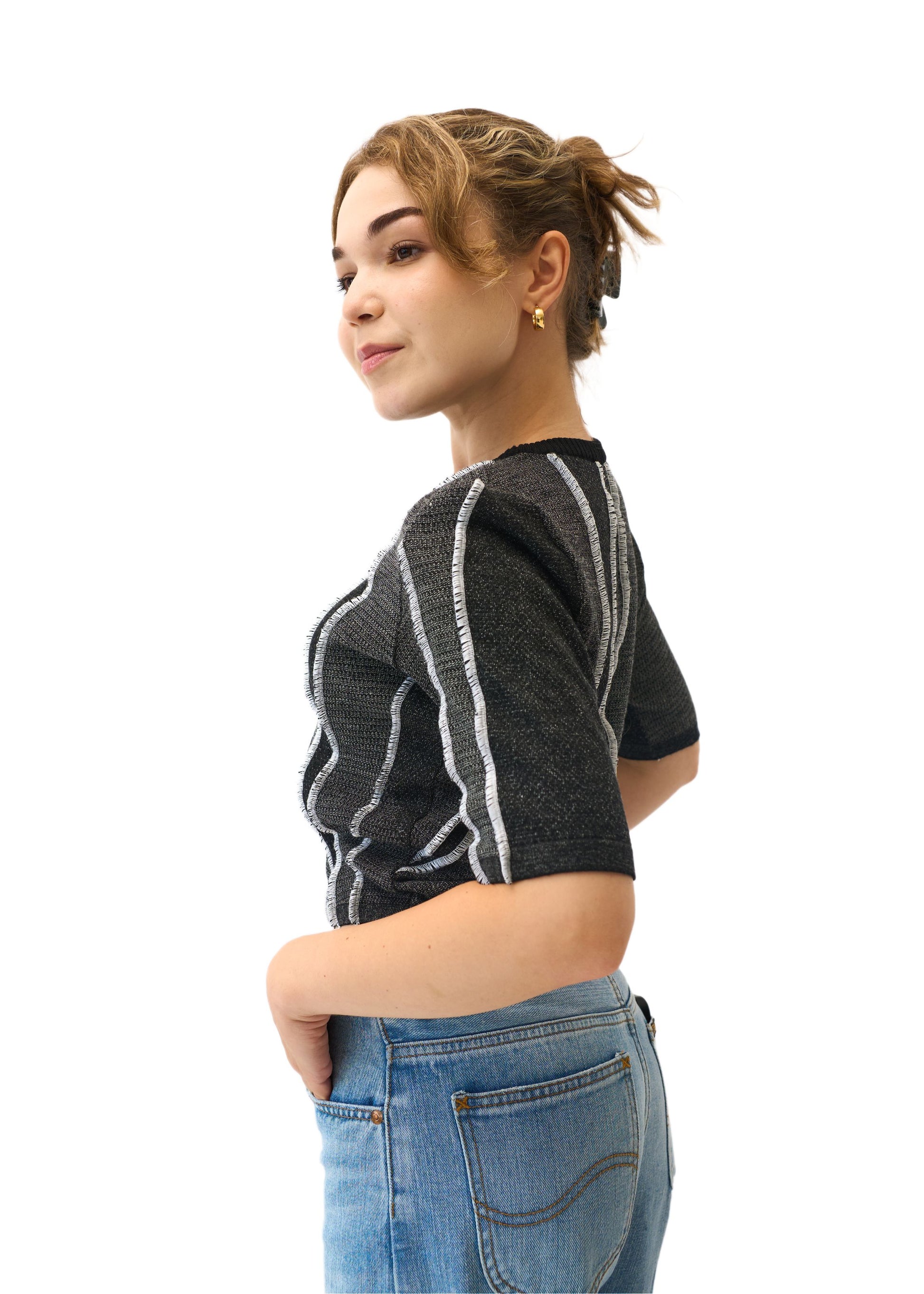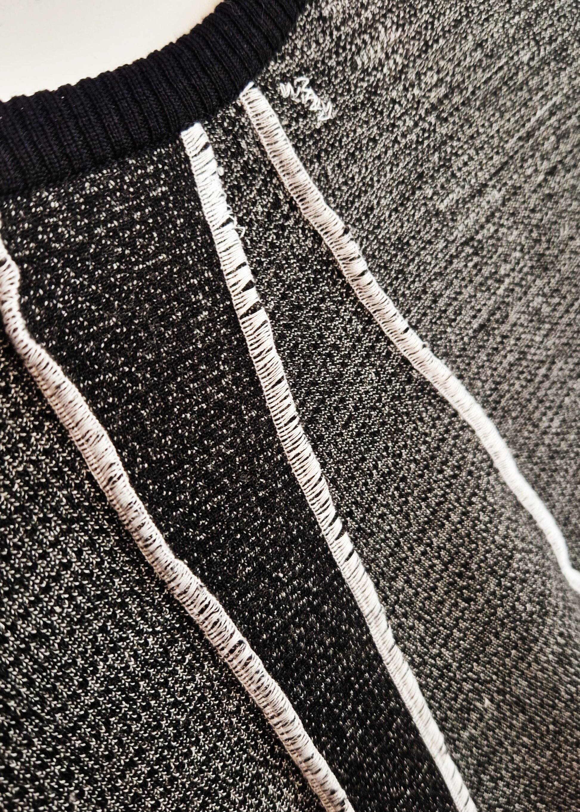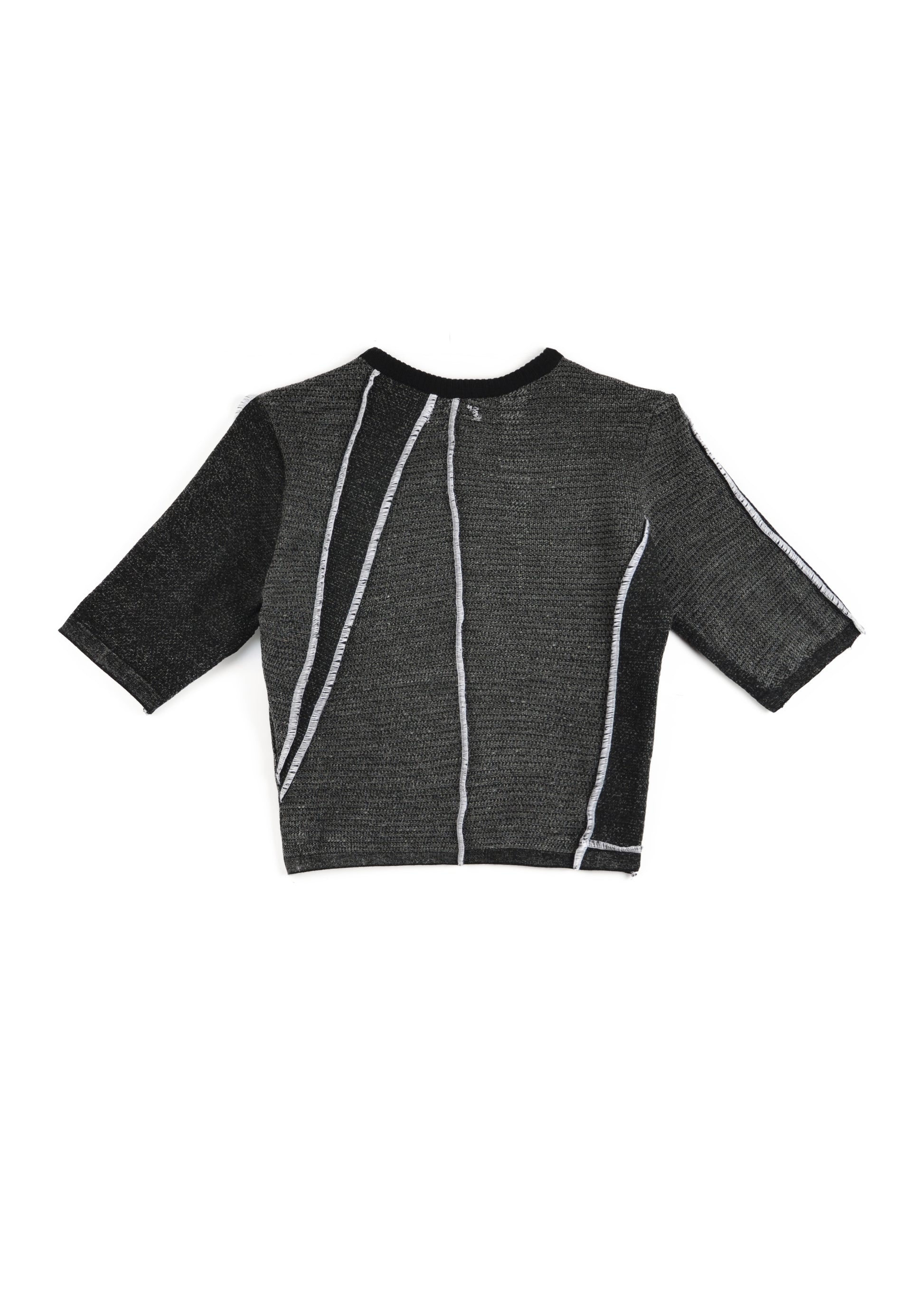 Dieses schwarz-graue Shirt ist ein einzigartiges Design, handgefertigt aus Restpostenstoffen.